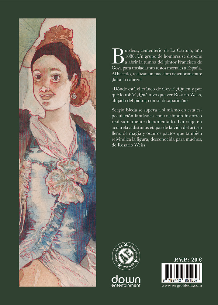 Sergio Bleda se supera a sí mismo en esta especulación fantástica con trasfondo histórico real sumamente documentado. Un viaje en acuarela a distintas etapas de la vida del artista lleno de magia y oscuros pactos que también reivindica la figura, desconocida para muchos, de Rosario Weiss.